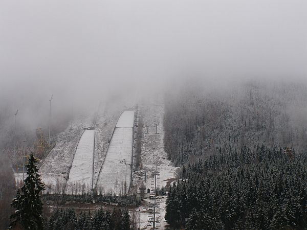 Za měsíc se v Harrachově koná významná světová sportovní událost - světový pohár ve skoku na lyžích, který se bez sněhu těžko obejde,a tak sněhovou pokrývku všichni vítají. Jen houšť, jak se říká.