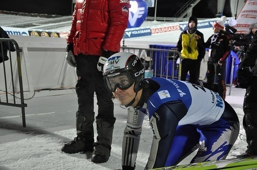 Jako první se spustí do ledové stopy Lukáš Hlava (7. na startovní listině). Na místním můstku zatím „trefuje“ stejné délky 112,5m / 117,5m / 114,5m. První dva údaje jsou tréninkové skoky, poslední údaj je z kvalifikace.