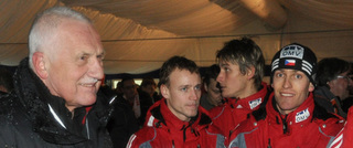 Ani prezident republiky Václav Klaus nepřinesl štěstí a počasí skokanům v Harrachově. „Mrzí mě to hlavně kvůli lidem, kteří tady odvedli obrovské množství práce,“ říkal, když pozdravil i fanoušky před závěrečným ohňostrojem. „Na skocích už jsem byl už ikskrát, na olympiádě v Turíně nebo Lillehammeru, i tady. U nás byly vždy úspěšné a populární. Je to napínavý, ale někdy nervózní, riskantní sport, což ve spojení s psychicky labilními jedinci vede někdy trošku k problémům,“ řekl v exkluzívním rozhovoru pro webové stránky www.skiflying.cz.