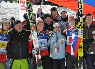 Slovinský tým ve složení Jurij Tepes, Peter Prevc, Robert Kranjec a nejmladší Jaka Hvala využili nevydařeného skoku Poláka s celkovým počtem 963.5 bodů porazili Poláky o skoro deset bodů.