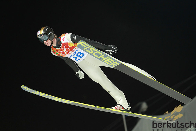Olympijským vítězem na středním můstku se stal závodník z Polska Kamil Stoch s jednoznačným bodovým odstupem. Nástupce Adama Malysze předvedl skvělé skoky 105,5 a 103,5 metru, které mu přinesly 278 bodů. Stříbrnou medaili získal Peter Prevc ze Slovinska (102,5 a 99 m), který na prvního Stocha ztratil 12,7 bodu. Bronz patří Andersu Bardalovi z Norska (101,5 a 98,5 m, 264,1 b).