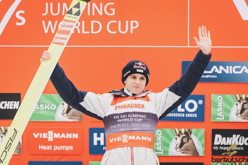 29.03.2026, Planica, Ratece, SLO, FIS Weltcup Ski Sprung, Finale, Planica, Herren, Skiflug, Einzelbewerb, im Bild Ski Fliegen Weltcup 2. Platz Stephan Embacher (AUT) // Ski Flying World Cup 2nd place Stephan Embacher of Austria during the men's individual ski flying competition at the FIS Ski Jumping World Cup Finals in Planica. Ratece, Slovenia on 2026/03/29. EXPA Pictures © 2026, PhotoCredit: EXPA/ JFK