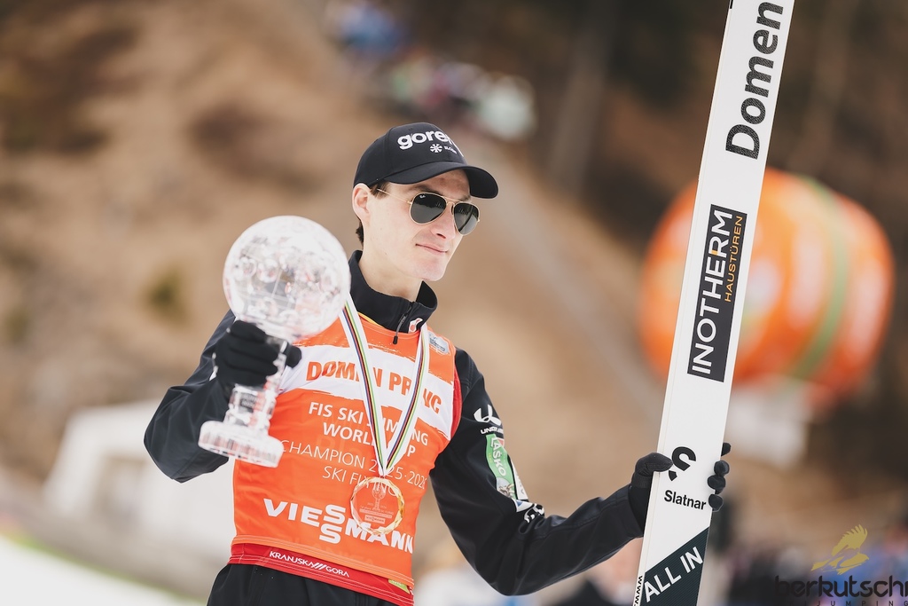 29.03.2026, Planica, Ratece, SLO, FIS Weltcup Ski Sprung, Finale, Planica, Herren, Skiflug, Einzelbewerb, im Bild Ski Fliegen Weltcup 1. Platz Manuel Fettner (AUT) // Ski Flying World Cup Champion Domen Prevc of Slovenia during the men's individual ski flying competition at the FIS Ski Jumping World Cup Finals in Planica. Ratece, Slovenia on 2026/03/29. EXPA Pictures © 2026, PhotoCredit: EXPA/ JFK