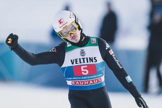 Die beiden deutschen Karl Geiger und Andreas Wellinger kämpfen dagegen weiter mit ihrer Form, springen hinterher..