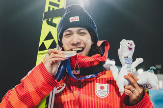 Nach Bronze (gemeinsam mit Gregor Deschwanden aus der Schweiz) von der Normalschanze und Bronze mit dem Mixed Team, heute Silber. Ren Nikaido springt in Top-Form und hat am Montag noch eine Chance auf eine weitere Medaille im Super-Team Wettkampf.