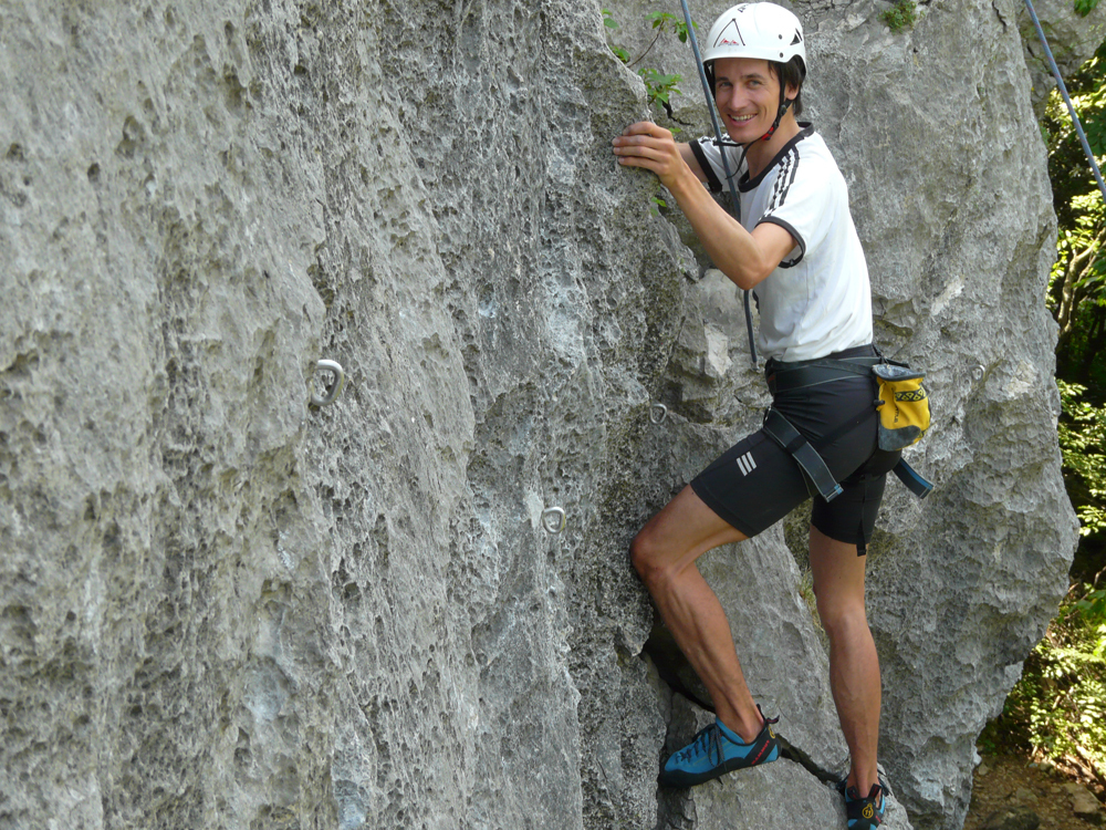 Nach einer Einweisung am ersten Tag und dem Vertrautmachen im Umgang mit Seil und Karabinern ging es dann auf die Sonnenplatten, ein unter Kletterern beliebtes Gebiet nördlich von Arco am Gardasee.