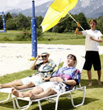 Sand statt Schnee. Wer diese Woche auf Sommerfrische im malerischen Windischgarsten ist, sollte nicht überrascht sein, wenn man auf einmal Gregor Schlierenzauer, Wolfgang Loitzl und den restlichen ÖSV-Skisprungassen auf ungewohntem Terrain begegnet. Denn im Rahmen der Kooperation von Volksbank und ÖSV werden dort gerade drei neue Werbespots abgedreht um an die äußerst erfolgreiche 1. Staffel anzuknüpfen.