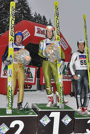 Alle drei Athleten musten allerdings lange warten, bis sie sich über das endgültige Endergebnis freuen durften, denn der zweite Durchgang dieses Springens entwickelte sich aufgrund der Windverhältnisse zu einer dramatischen Zitterpartie.
