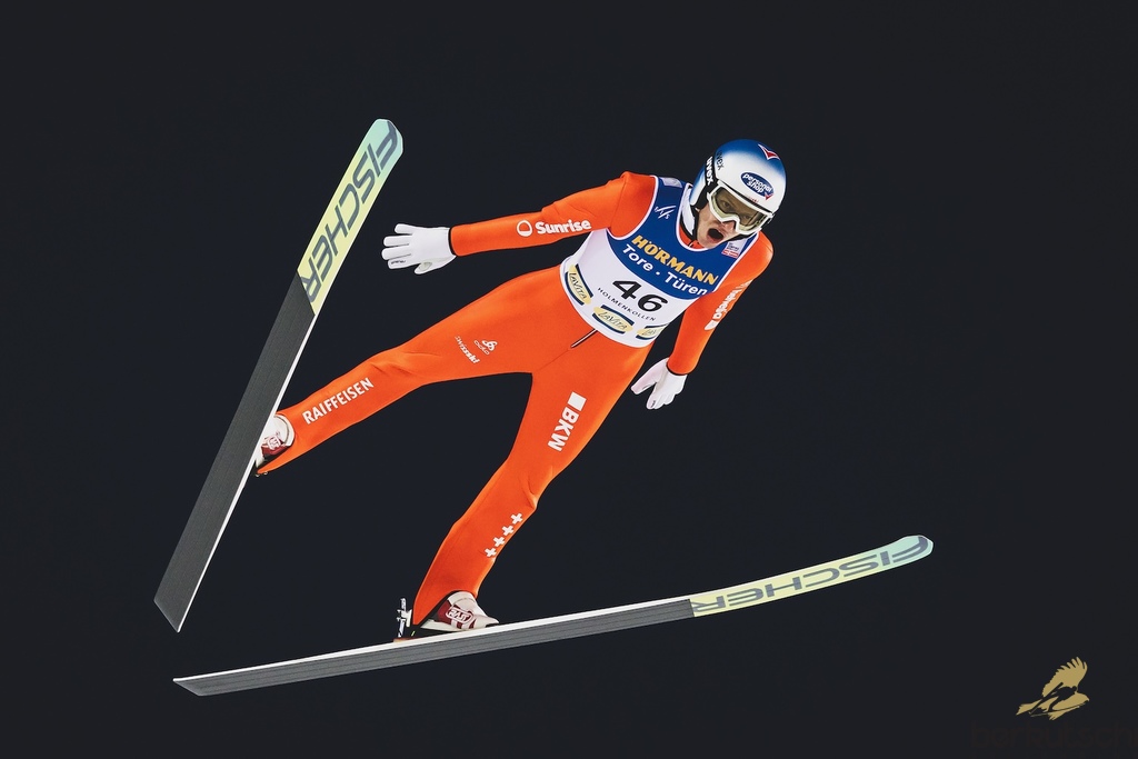 13.03.2026, Holmenkollen, Oslo, NOR, FIS Weltcup Ski Sprung, Oslo, Herren, Großschanze, Qualifikation, im Bild Sandro Hauswirth (SUI) // Sandro Hauswirth (SUI) during the qualification for the men large hill individual competition of the Viessmann FIS Ski Jumping World Cup at the Oslo, Norway on 2026/03/13. EXPA Pictures © 2026, PhotoCredit: EXPA/ Tadeusz Mieczynski