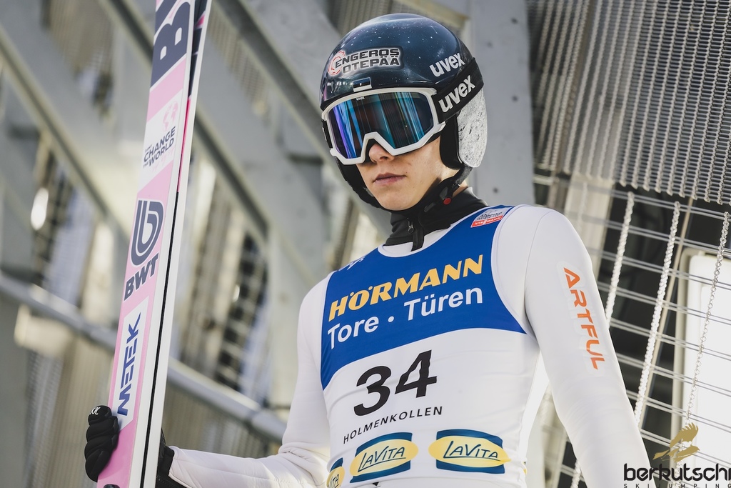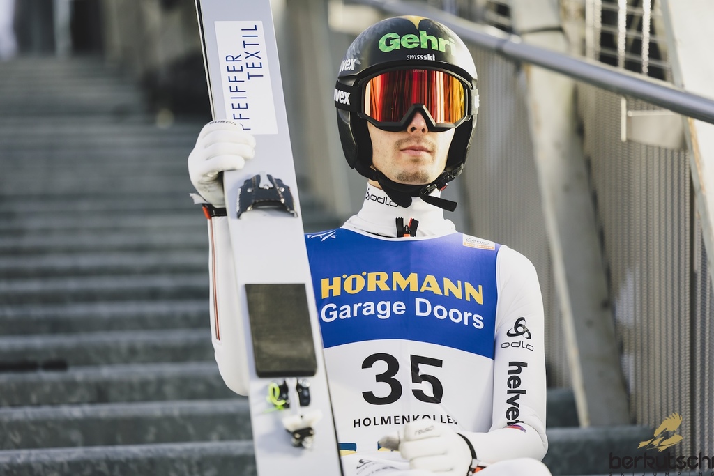 13.03.2026, Holmenkollen, Oslo, NOR, FIS Weltcup Ski Sprung, Oslo, Herren, Großschanze, Qualifikation, im Bild Sandro Hauswirth (SUI) // Sandro Hauswirth (SUI) during the qualification for the men large hill individual competition of the Viessmann FIS Ski Jumping World Cup at the Oslo, Norway on 2026/03/13. EXPA Pictures © 2026, PhotoCredit: EXPA/ Tadeusz Mieczynski