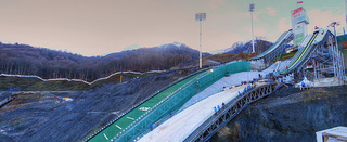 この新しく出来た施設は観客にとって目を見張るものだろう。ジャンプ台自体は出来上がっているものの、それ以外の周辺の建物や道路は今も慌ただしく建設中である。ソチから約50kmのこの地域はおびただしい工事現場となって、2014年のオリンピックの準備に追われている。