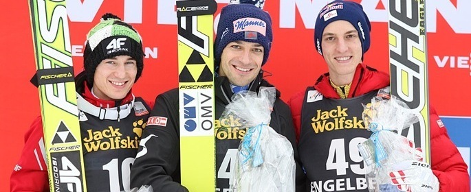 エンゲルベルグ大会(スイス)一日目の今日、ファイナルラウンドで猛烈な追い上げを見せたアンドレアス・コフラーが優勝した。131mと136.5m(272.6ポイント)を飛んだコフラーは復活したポーランドのカミル・シュトッホ(132.5mと134m、272.5ポイント)に0.1ポイントという僅差で、またチームメイトであるグレゴア・シュリーレンツァウアー(オーストリア、134mと132m、268.1ポイント)を振り切った。