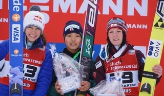 昨日優勝のアメリカ サラ・ヘンドリクソンが、今日は2位となった。1本目103mで2位とし、2本目も101.5m、トータル245.9ポイントで順位は変わらずの2位。この週末の好成績について「ヒンターツァーテンのジャンプ台は大好きだし、シュヴァルツヴァルトにいるのは楽しい。今日は100m超えのジャンプが多く、観客も楽しめたと思う。」と語った。