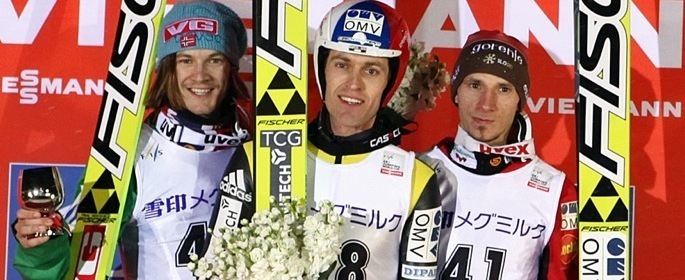 男子W杯札幌大会1日目は、ヤン・マトゥラが見事な優勝を遂げた。チェコの32才マトゥラは、トム・ヒルデ、ロベルト・クラニエツを抑えてのW杯キャリア初優勝。これまでは2010/2011シーズン札幌大会での4位が最高順位だったマトゥラは、132m/135mと2本とも見事なジャンプで、トータル249.5ポイントを獲得して念願の表彰台頂点に立った。