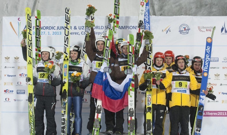 世界ジュニアリベレッチ大会でスロベニアチームが女子団体戦優勝を決めた数時間後、天候不順のなか男子団体戦も行われ同じくしてポーランドとドイツをおさえスロベニアが頂点に立ち、アベック優勝を決めた。