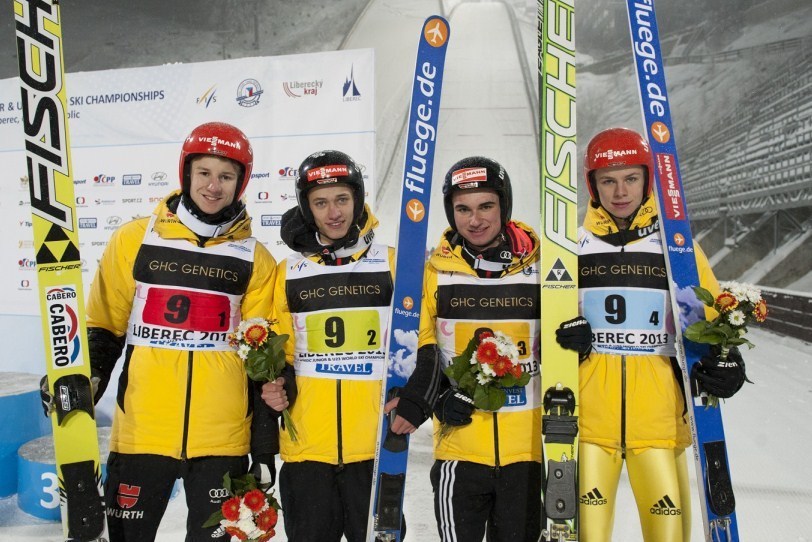 ドイツとオーストリアによる3位争奪戦はエキサイティングな展開となった。ファーストラウンド終了時点でドイツはオーストリアに5.5ポイント差で3位につけていた。ファイナルラウンド後半2グループの前にはその点差も1ポイントに迫ったが、アンドレアス・ウェリンガーがシュテファン・クラフトとのバトルに勝ち、メダル確保に成功した。「スタート前から今日試合展開が難しくなることが予想されていた。実際オーストリアとの3位争いはエキサイティングだったし、自分たちもナーバスになっていたが、良いジャンプをすることが出来て本当に嬉しく思う。」とウェリンガーは話した。カール・ガイガー、ミヒャエル・ドレーヘア、トビアス・ロッフェラーの4名で1038.5ポイントをスコアし、銅メダルに輝いた。