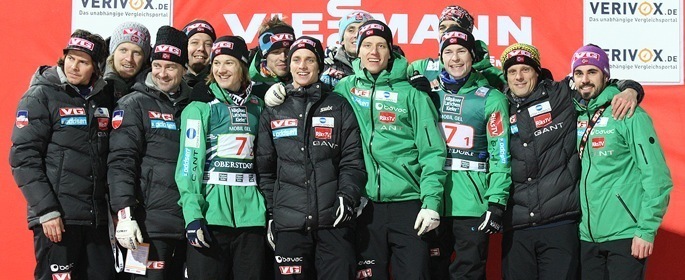 オーストリアチームはウィリンゲンでは表彰台を逃したが、オーベルストドルフでは2位。4選手(シュテファン・クラフト、ヴォルフガング・ロイツル、マルティン・コッホ、グレゴア・シュリーレンツァウアー)全員が安定したジャンプをみせてトータル1529.3ポイント。W杯リーダのグレゴア・シュリーレンツァウアーは192mと202.5mで最高の調子とは言えなかった、しかし若手シュテファン・クラフトは205.5mと208mのジャンプを見せ403.4ポイントをスコアした。オーストリアはチームツアーで3位入賞を果たした。