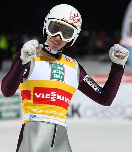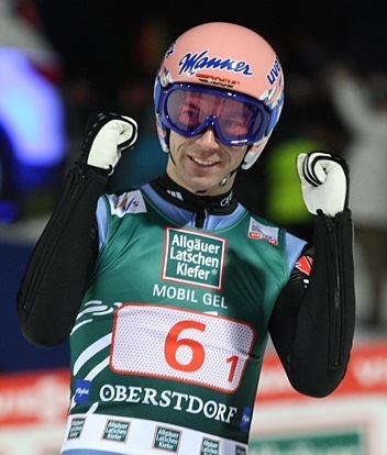 地元ファンの前で団体戦もチームツアー総合も表彰台を祝うことが残念ながら出来なかったドイツチーム。ベテランのミヒャエル・ノイマイアー(201mと209.5m)、セヴェリン・フロインド(205mと205.5m)は高得点を得たものの、リヒャルド・フライタクが2本目でミスをして196mに留まり表彰台には届かなかった。