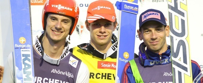 アンドレアス・ヴェリンガーは圧倒的だった。2本とも131.5m、最長飛距離をマークしてトータル310.4ポイントをスコアしたこの若干17歳の選手は、アンドレアス・ヴァンク (130 m/127.5 m; 283.6ポイント)、ミヒャエル・ノイマイアー(125.5 m/127 m; 283.3ポイント)と素晴らしいパフォーマンスを見せた2人のチームを大きく引き離して圧勝した。