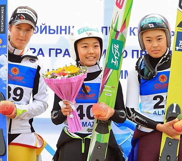 ニジニ・タギル大会(RUS)で2勝をあげたあと、高梨にとってはこれで3連勝。総合425ポイントとして、最終戦を待たずして、グランプリ総合優勝も手にした。コリーヌ・マテルが総合2位(289ポイント)、スロベニアのカティア・ポズンが3位につけている(206ポイント)。