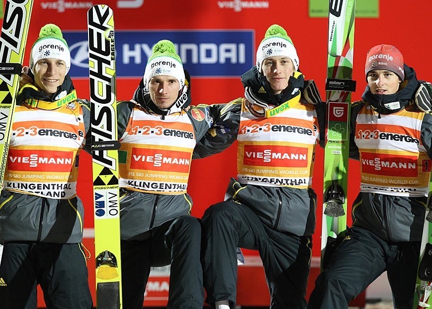 ドイツのクリンゲンタルで開催中のスキージャンプ・ワールドカップ開幕戦でスロベニア・チームが団体優勝した。スロベニアのユーリ・テペス、ロベルト・クラニエッツ、ヤカ・フヴァラ、ペーター・プレフツが540.6ポイントを獲得して、2位のドイツ(528.3ポイント)、3位の日本(523.6ポイント)に差を付けた。