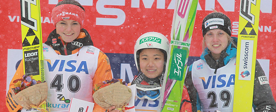日曜の蔵王大会第2試合で、高梨沙羅は圧倒的な98m(127.5ポイント)で、2位に10点差をつけ優勝した。2位になったドイツのカリーナ・フォクトは96m、117.5ポイントだった。