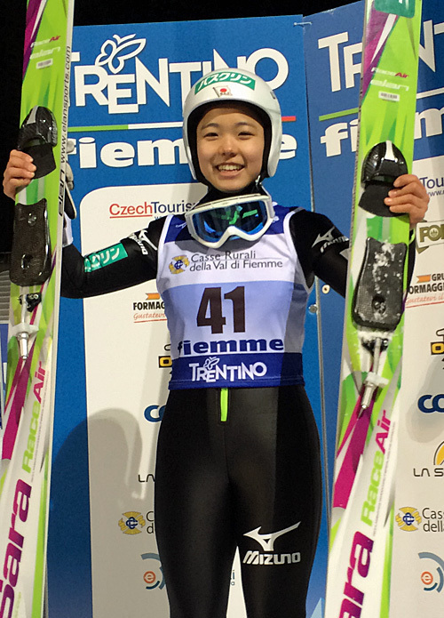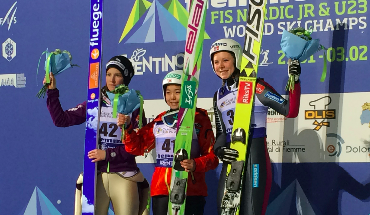 イタリアのヴァルディフィエンメで行われているFISジュニア世界選手権で、高梨は3連覇という記録を達成した。高梨は既に、2012年のエルズルム大会(トルコ)と2013年のリベレツ大会(チェコ)でも優勝している。