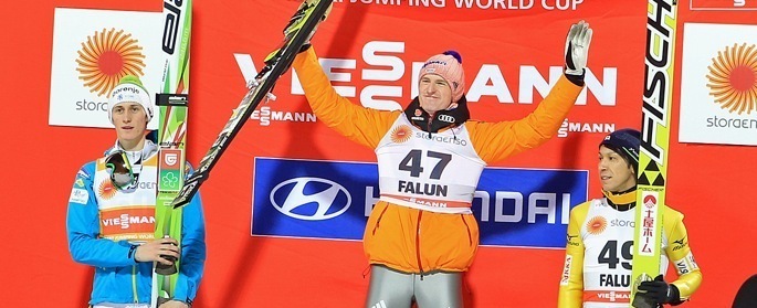 2/26(水)に行われたファールン大会(スウェーデン)で、ソチ五輪団体戦の金メダルを取ったセヴェリン・フロインド(独)が優勝した。ファールンでは2015年にノルディックスキー世界選手権が行われる予定で、今回はそのリハーサル的な意味もあったが、そんな中、2位に着いたペーター・プレフツ(スロベニア)は、W杯総合ランキングで首位に立った。