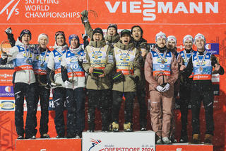 Как и ожидалось, командные соревнования на Чемпионате мира по лыжному полёту оказались чрезвычайно захватывающими. Снова в центре внимания: словенская суперзвезда Домен Превц. Однако не  из-за длинных полётов, а из-за небольшой ошибки:
