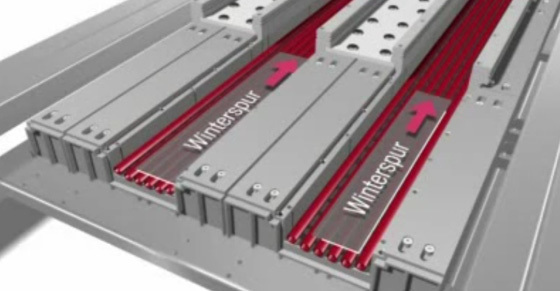 И в самом деле, летом это просто дорожка, а зимой, когда она покрыта снегом, включается система охлаждения и трек разгона нарезается по льду с помощью специального станка. «Мы особенно гордимся нашей уникальной двойной трек-системой, - говорит Ридель. - Ее можно использовать круглый год и не надо ничего менять. Вы закладываете трек только один раз, покрываете его сверху вторым другим и включаете систему охлаждения. Обе дорожки зимой должны быть иметь 7-сантиметровый слой снега, вот и все». А это значит, что достаточно будет около двух кубических метров, чтобы подготовить 100-метровый трамплин, а не в 30 раз больше, как происходит с традиционной подготовкой трассы.