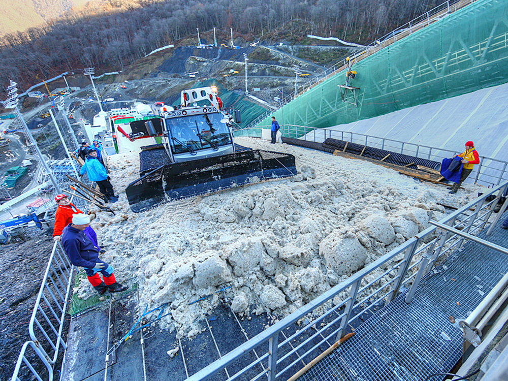 Вне всякого сомнения, новый объект поражает зрителей. Впечатляющий трамплин готов, но работа над инфраструктурой все еще продолжается. Около 50 км от Сочи земля встает дыбом, так что к Олимпиаде все будет готово.