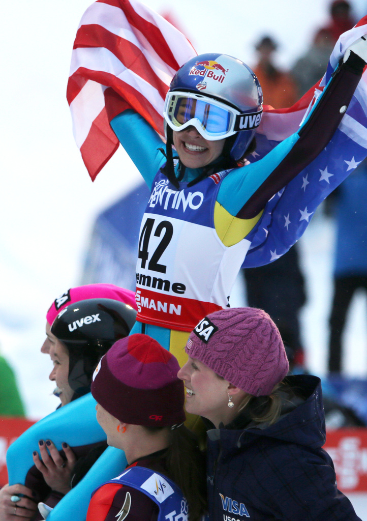 Тысячи восторженных зрителей пережили волнующие моменты после финального прыжка Хендриксон, когда сильная сборная США пронесла чемпионку мира по кругу почета на своих плечах.
