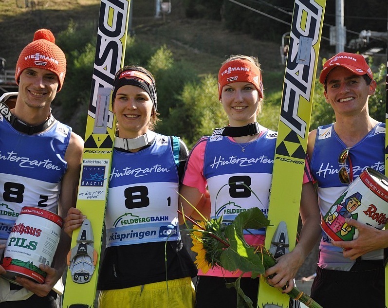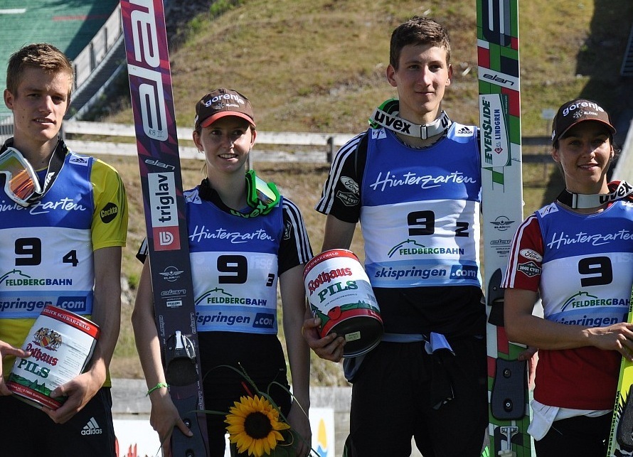 Третье место досталось команде Германии. Ульрике Грайсслер, Андреас Ванк, который упал во второй попытке, но травмы не получил, Свеня Вёрс и Рихард Фрайтаг заработали в итоге 873.3 балла и повторили третий результат, который Германия показала в Хинтерзартене в прошлом году. Выдающиеся показали продемонстрировал Рихард Фрайтаг, который набрал 252.8 балла и выиграл бы индивидуальный зачет в субботу, опередив Матьяжа Пунгертара и Нориаки Касаи. Свеня Вёрс осталась удовлетворена свои первым выступлением в сборной. «Сейчас я счастлива, это мое первое выступление. Соревнования прошли хорошо и для команд, и для зрителей. Я думаю, что смешанные старты — это будущее в прыжках с трамплина».