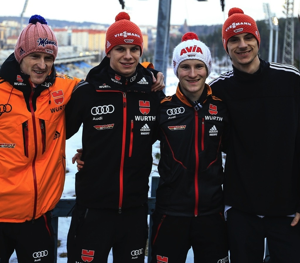 Сборная Германии в составе Маринуса Крауса, Андреаса Веллингера, Андреаса Ванка и Зеверина Фройнда показали плохой старт и после первого тура занимали лишь пятое место. Но в финале они заработали 960.8 балла, показав впечатляющее выступление. Они могли рассчитывать на Зеверина Фройнда, находящегося в прекрасной форме, который показал прыжки на 130.5 м и 127.5 м. Как и норвежцы, Руни Вельта, Андерс Фаннемел, Андреас Стьернен и Андерс Бардал, немцы также извлекли пользу из плохо прыжка Петра Превца. Бронзовый и серебряный призер Олимпиады, проиграл второе место для своей команды. Превц, Йерней Дамьян, Юрий Тепеш и Нейч Дежман остались на четвертой строчке с 951.3 балла, проиграв 8.7 балла Норвегии.